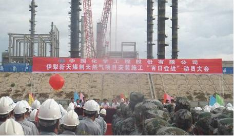 年產(chǎn)20億立方天然氣的伊犁新天項(xiàng)目由山東新汶礦業(yè)集團(tuán)投資興建,中國(guó)化學(xué)工程股份有限公司實(shí)行EPC總承包。目前工程已進(jìn)入土建向安裝過渡的關(guān)鍵時(shí)期,全面完成今年安裝施工任務(wù)是保證工程實(shí)現(xiàn)2014年6月30日機(jī)械竣工的前提。適逢新疆施工黃金季節(jié),總承包項(xiàng)目適時(shí)吹響了 “百日會(huì)戰(zhàn)”的號(hào)角。
