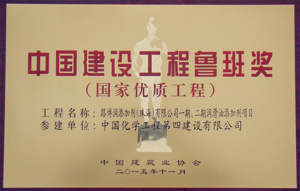 11月17日,國家住房城鄉(xiāng)建設(shè)部通報表彰了2014~2015年度中國建設(shè)工程魯班獎(國家優(yōu)質(zhì)工程)獲獎單位,中國建筑業(yè)協(xié)會在北京釣魚臺國賓館舉行隆重的表彰大會,華南分公司參建的路博潤添加劑(珠海)有限公司一期、二期潤滑油添加劑項目榮獲中國建筑業(yè)的最高榮譽獎——魯班獎。這是公司成立61年來首次榮獲此項殊榮。