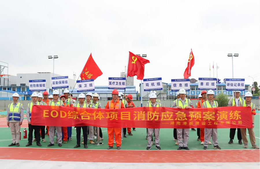 為進一步提高建筑工地人員的自救防范能力,有效處置施工現場突發火災事故, 杜絕安全事故發生。日,港晨公司EOD項目部組織開展消防安全應急救援演練。
