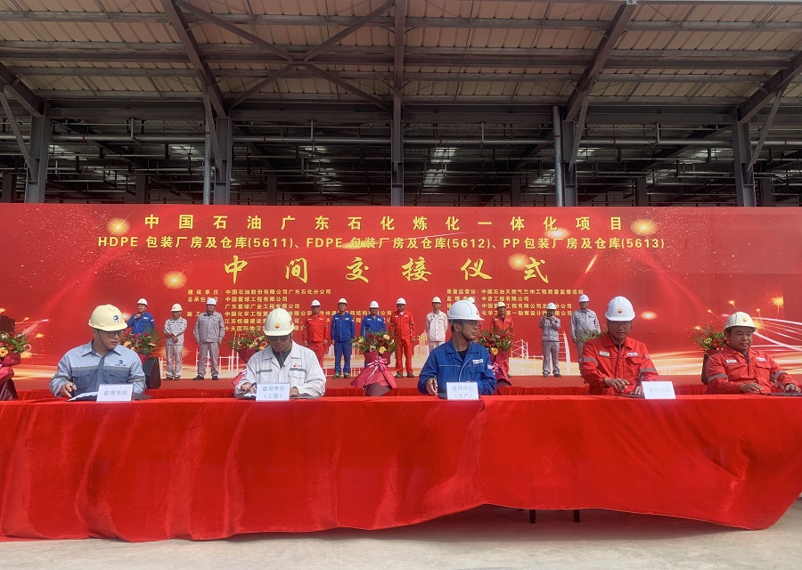 8月28日,由華北公司承建的廣東石化煉化一體化項目聚烯烴包裝廠房及倉庫安裝工程舉行中交儀式。中國石油廣東石化公司副總經理李錫均,中國寰球總項目部項目經理魏延長,廣東寰球廣業工程有限公司董事長焦晉安、副總經理莊旭,公司副總經理趙亮出席儀式。