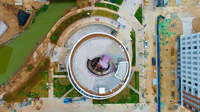 圓,是EOD項目B地塊內(nèi)的職工活動中心。B7棟以其獨(dú)特的圓形造型,環(huán)繞在建筑周邊的坡道,結(jié)合場地高差及景觀,成為一道靚麗的風(fēng)景線,即將見證著B地塊的“圓滿”完工。作為休憩、娛樂的空間,它為思鄉(xiāng)人打造了一處溫馨的港灣。