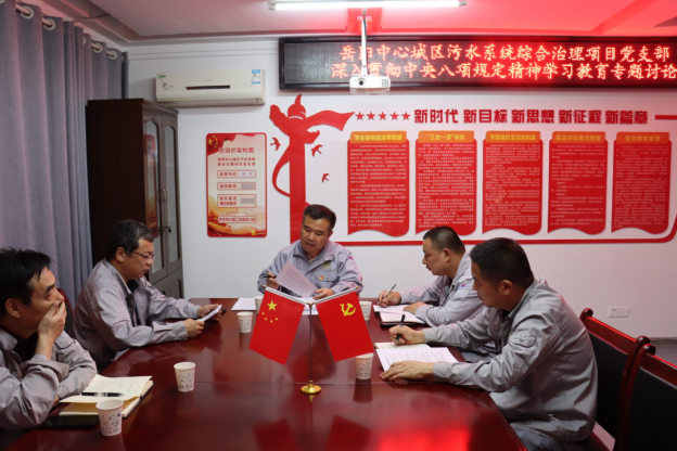 4月22日,岳陽中心城區污水治理項目黨支部召開深入貫徹中央八項規定精神學習教育專題學習研討會。會議圍繞《習近平關于加強黨的作風建設論述摘編》和中央八項規定及其實施細則精神組織學習并開展研討,全面加強項目團隊作風建設。會議強調,要以學習教育為重要契機,強化責任擔當意識,嚴守各項規章制度,確保項目建設依法依規推進,堅決杜絕違規行為,全力營造風清氣正的工作環境,以作風建設新成效推動項目建設再上新臺階,為公司高質量發展做出更大貢獻。
