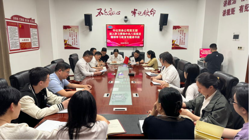 4月21日,中化勞務公司黨支部舉辦深入貫徹中央八項規定精神學習教育專題讀書班。活動中,全體黨員原原本本研讀《習近平關于加強黨的作風建設論述摘編》,認真學習領會中央八項規定及其實施細則精神。活動要求,全體黨員干部務必提高政治站位,深刻領悟開展學習教育的重大意義,將思想和行動統一到集團公司和公司黨委決策部署上來,切實將學習成果轉化為實際行動,以實實在在的工作成績為公司高質量發展貢獻積極力量。