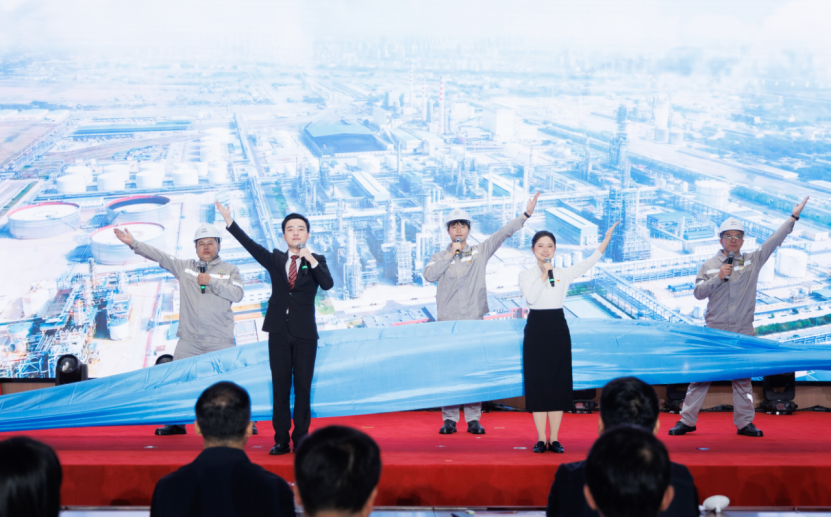 在第三篇章中,青年員工“小劉”充滿激情地分享了參與全球首創廢塑料化學循環項目——東粵化學項目的奮斗經歷。面對無先例可循的挑戰,黨員先鋒隊和青年突擊隊創新運用BIM技術和“立體穿插”施工法,以“三年項目一年建成”的超常規速度,為破解“白色污染”世界難題貢獻了中國化學方案,吹響了向綠色新材料領域進軍的號角。