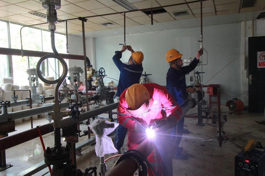 據(jù)了解,此次搶工包括11套流量計安裝,4套減溫減壓閥組裝,真空泵管道改建、上百組閥門安裝等。為確保優(yōu)質(zhì)高效完成施工任務(wù),項(xiàng)目克服人員不足、施工組織困難和疫情防控等不利因素,歷經(jīng)24小時連續(xù)施工,在9月21日圓滿完成改建管道的拆除、恢復(fù)、回裝、試壓、吹掃及監(jiān)檢工作。