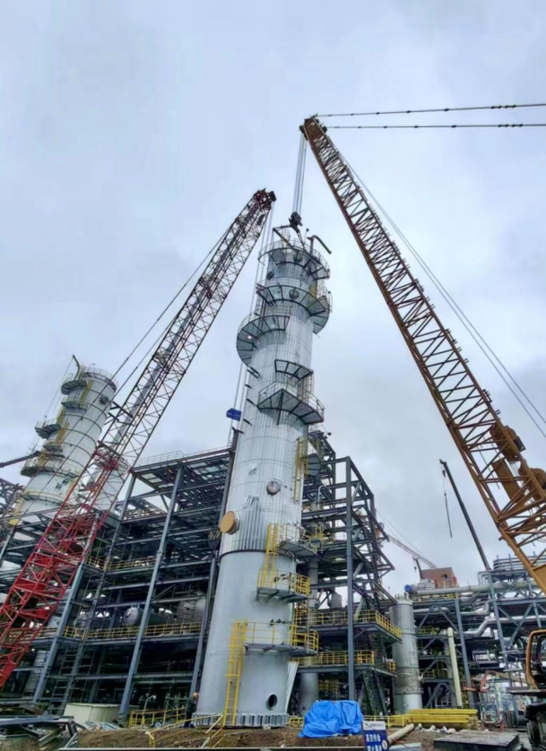 近日,東北公司大連恒力項目順利完成DPC裝置DPC提純塔器吊裝。