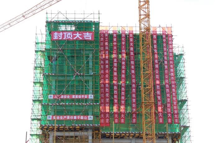 此次封頂?shù)漠a(chǎn)品篩分及輸送主體結(jié)構(gòu)占地面積329m2,建筑面積2950m2,層數(shù)10層,高度為44m,是整個項目中的核心組成部分之一,為一期工程最高單體。自今年5月項目開工以來,項目部克服工期緊、風(fēng)沙暴雨、高溫酷暑等難題,緊扣節(jié)點工期,精心組織施工,有效保障了施工質(zhì)量及進度要求,實現(xiàn)了產(chǎn)品篩分及輸送主體結(jié)構(gòu)順利封頂。
